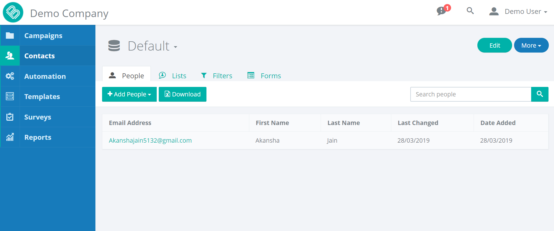 This helps you to add the people you want in your contacts, you can add the multiple people at a time using upload format or you can just add a single person as per your need, clicking on the ‘Single Person‘ tab will let you add the person with all the input attributes you edited while creating the customized database.